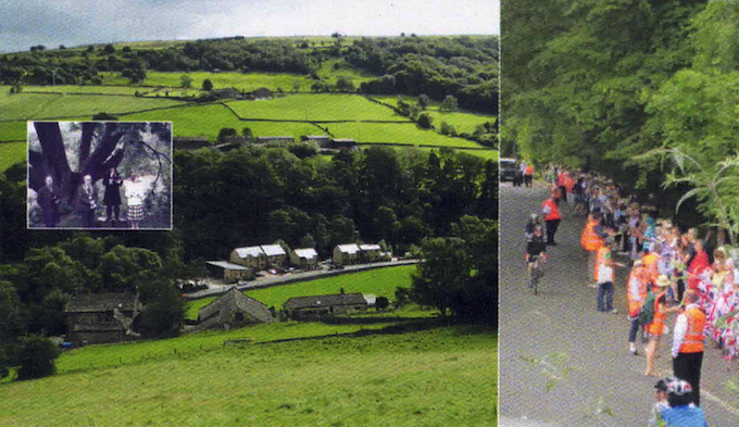 - 2014 proved to be the most exciting year for Cragg Vale. The Tour de France Grand Depart Stage 2, came here on the 6th, and Cragg Vale School (as was) was right in the middle of the stage. On the day, the peloton passed through in a flash but crowds had descended from early morning and the festivities continued into the evening. More importantly, the 4th saw Cragg Vale being awarded the Guiness World Record for the longest continuous line of hunting - a mere 12,115 metres of it, consisting of 59,939 flags. Cragg Vale has its own annual event - The Fell Race. It takes place end June/early july